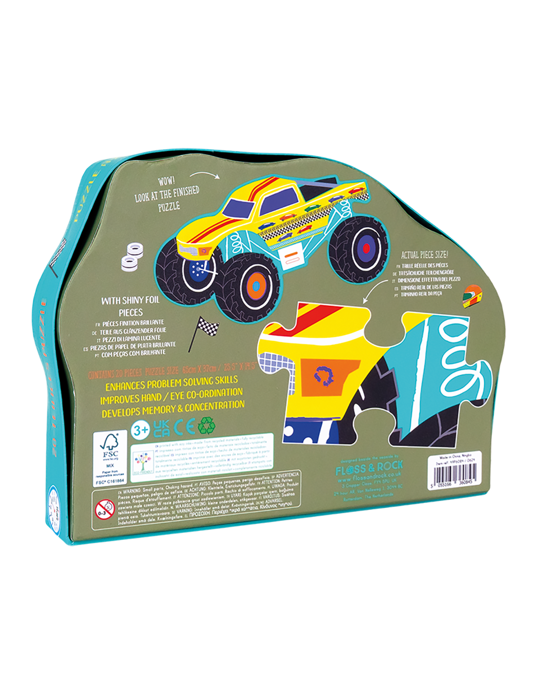 Φτιάξτε λίγο v-room για αυτό το εξαιρετικά σούπερ παζλ Cars 20 κομματιών. Μέσα στο επαναχρησιμοποιήσιμο κουτί σε σχήμα, θα βρείτε 20 υπέροχα ογκώδη κομμάτια που δημιουργούν ένα υπέροχο παζλ MONSTER TRUCK!