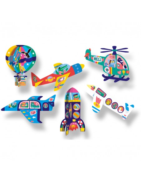Αυτό το διασκεδαστικό και δημιουργικό creative box της σειράς Les Ateliers προσφέρει στα παιδιά την ευκαιρία να συναρμολογήσουν 6 εντυπωσιακά ιπτάμενα οχήματα με χαρτόνι και να τα διακοσμήσουν με αυτοκόλλητα.