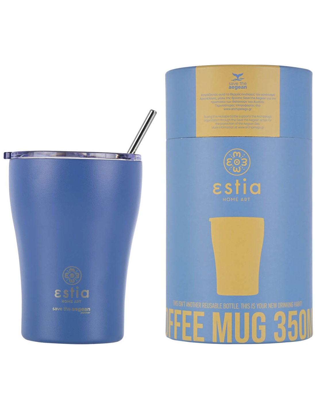 Estia Coffee Mug Θερμός 350ml Save The Aegean Denim Blue