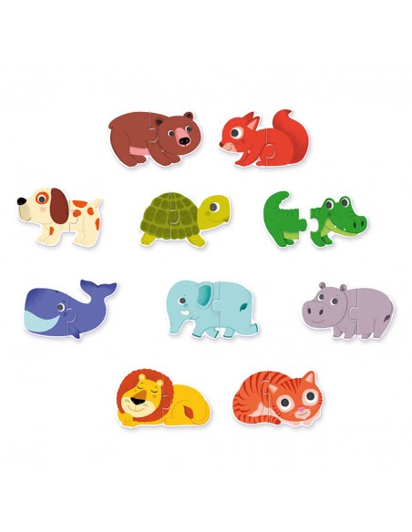 Djeco 10 Παζλ με 2 κομμάτια 'Ζωάκια'
